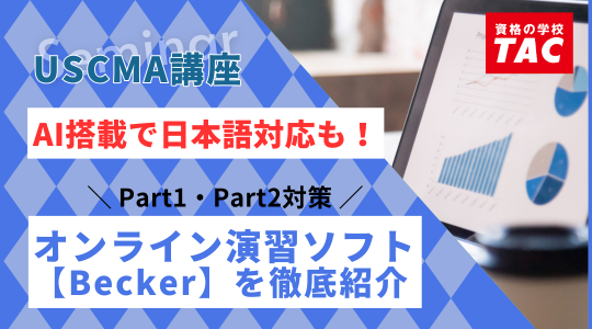 「演習ソフト」もAIで日本語対応!Beckerオンライン演習ソフトは世界トップクラスの受験指導校であるBecker社とTACだから成し得た本試験と近似したインターフェースでの問題演習ができるソフトです。