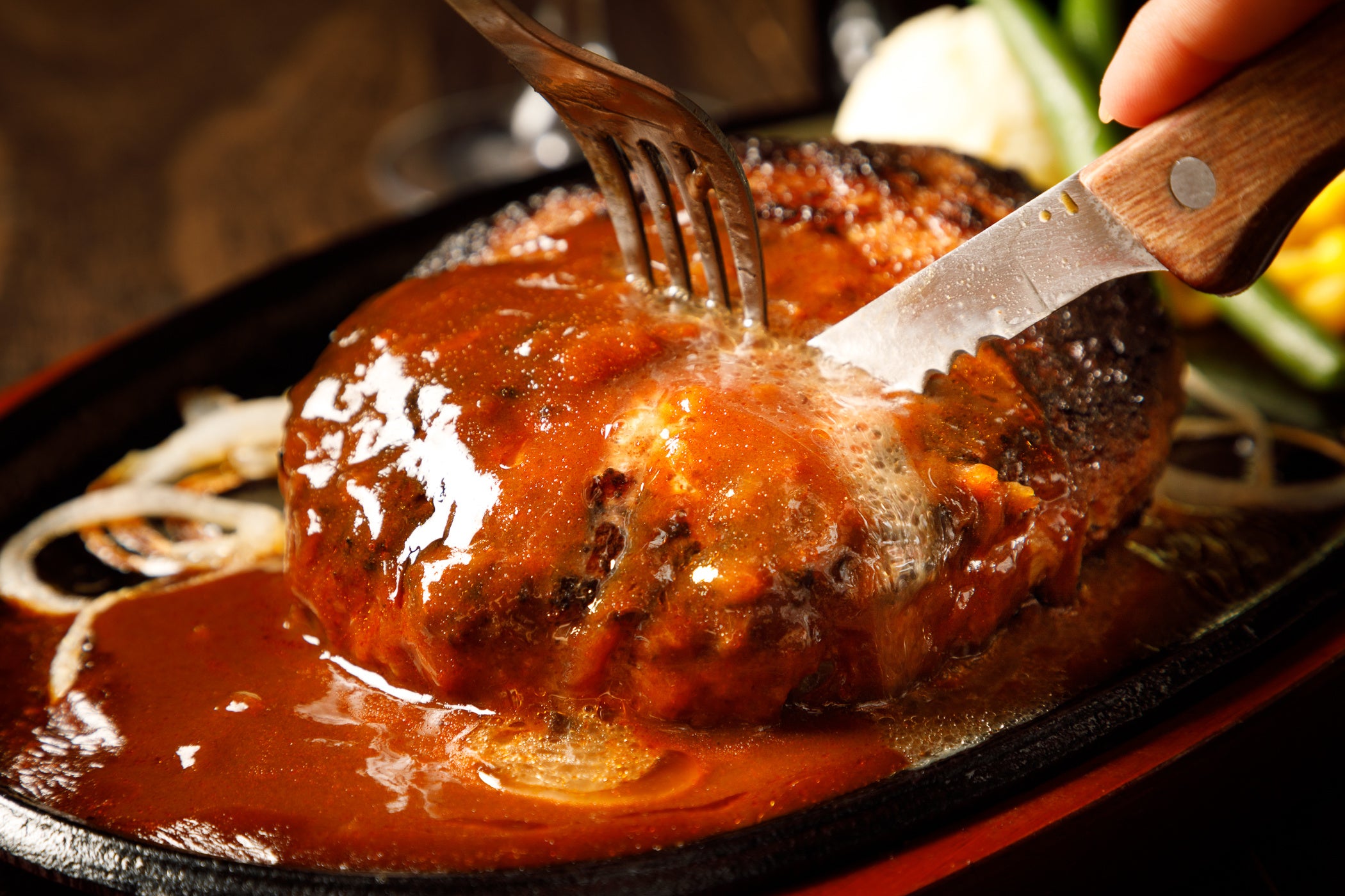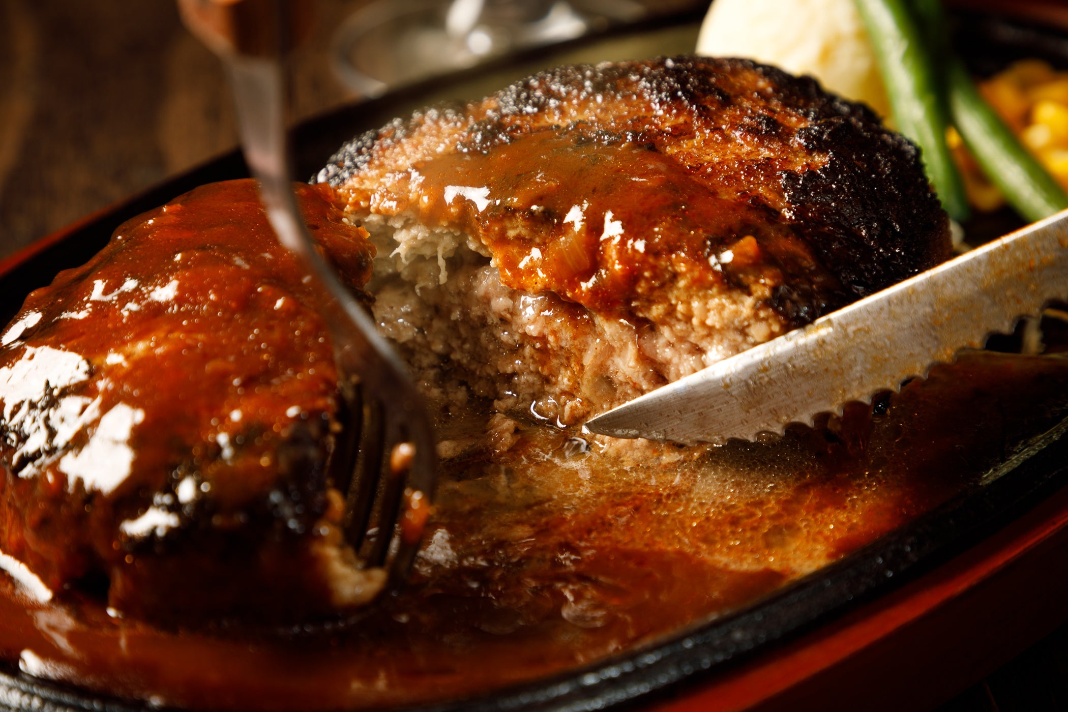 ブランド牛「若姫牛」を使用したジューシーなステーキと、毎日店内で手ごねする自家製ハンバーグが人気です。