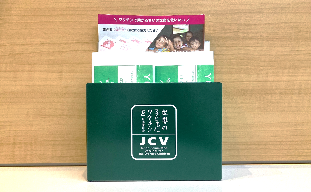 ポリオなどの感染症から途上国の子どもたちの命を救う活動に気軽に参加いただけるのが、JCVの「ハガキ・切手回収による子どもワクチン支援」です。額面が古くなってしまったり、使う機会がなくなってしまい、不要になったハガキや切手、書き損じやプリントミスをしてしまったはハガキをご寄付いただくと、ワクチンに換えて支援国の子ども達に贈ります。昨年は1年間で、ポリオワクチン(1人分約20円)約521,719人分(10,434,363円分)ものご支援につながり、途上国の多くの子どもを感染症から守ることができました。