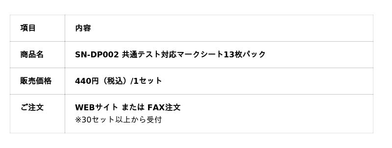 【全国の公立、私立高等学校様向】共通テスト模試に最適な「SN-DP002 共通テスト対応マークシート13枚パック」、好評販売中!