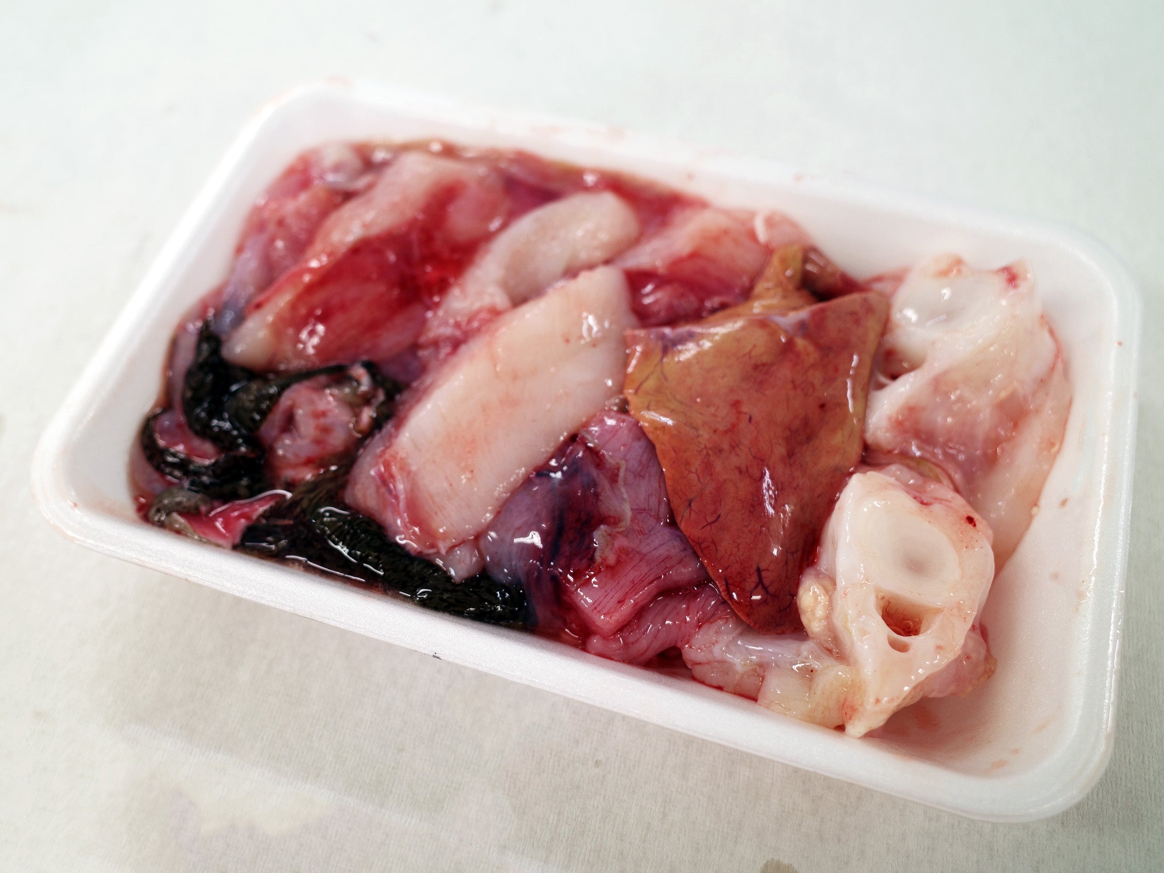 スタッフは、さばいた部位を丁寧に分けて、あんこうを余すことなく堪能できるようにしていきます。