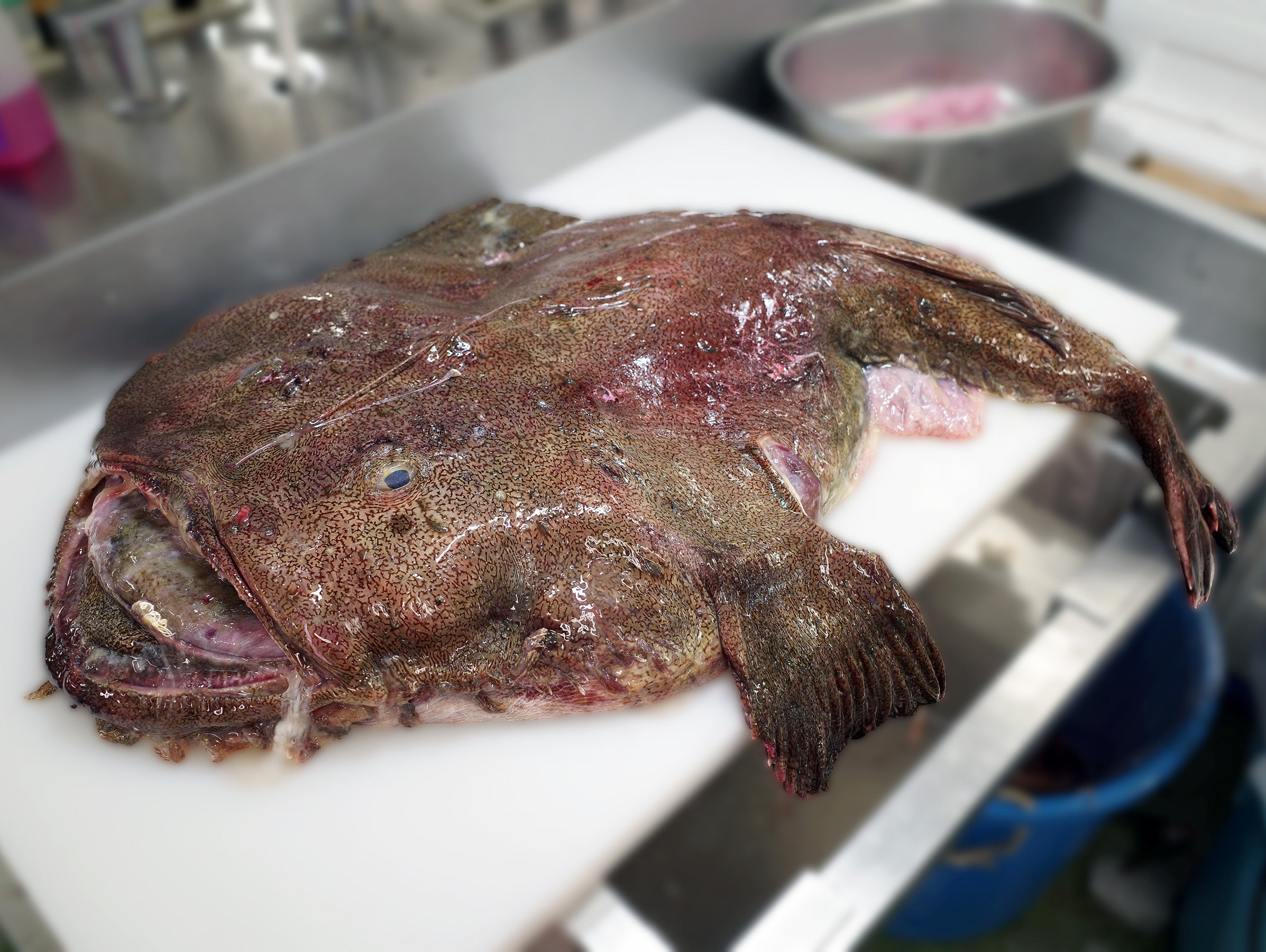 でっぷり太ったからだに大きな口、ぬめぬめっとつかみどころのないようなその姿に圧倒されますが、その独特の外観とは裏腹に、上品な白身やゼラチン質の皮など、その美味しさにさらに驚かされます。