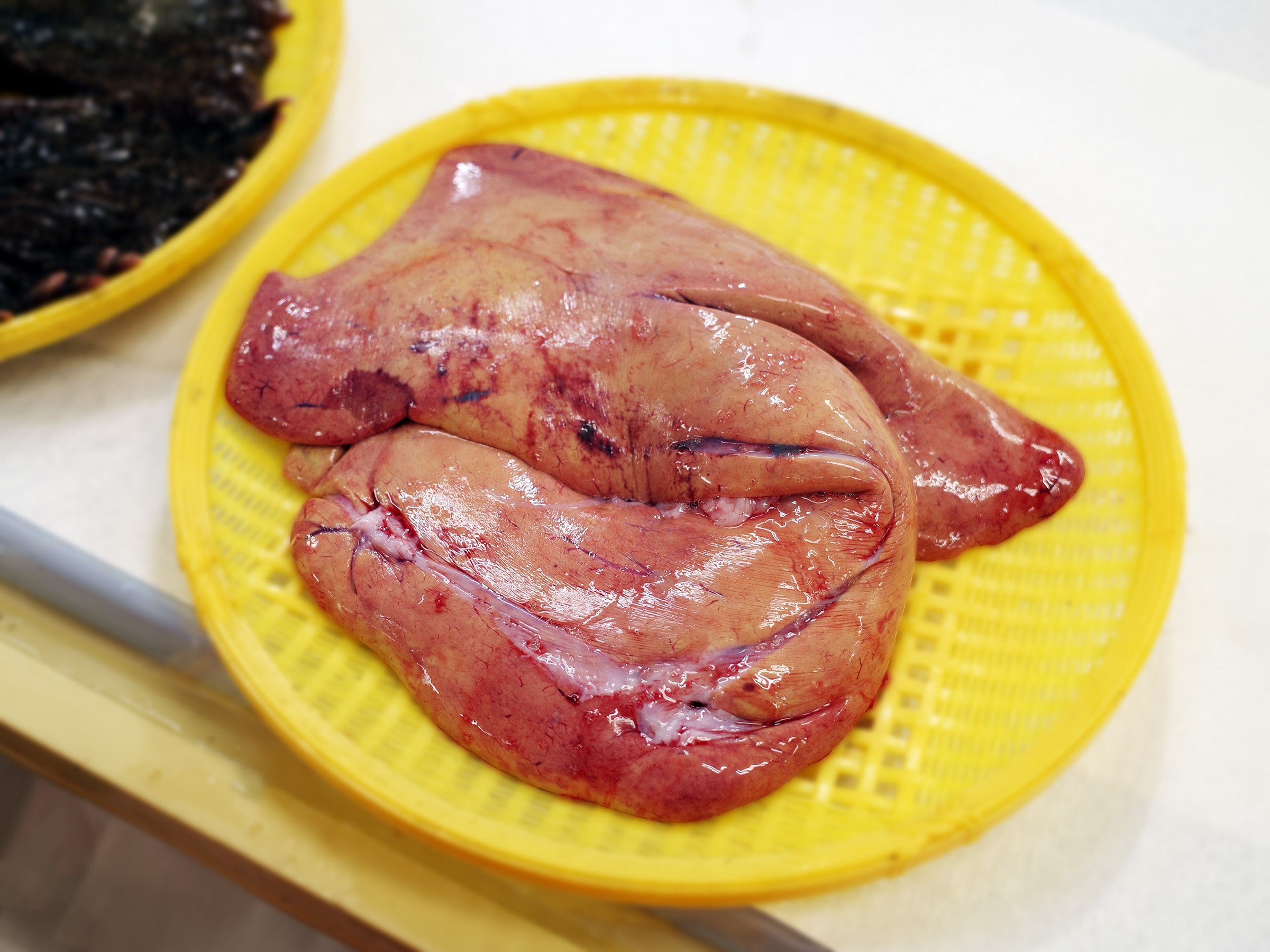 もちろん、腹抜きはしていても、あんこうの魅力である「肝」は絶対に残します。魚体が大きければあん肝も大きい、ということでこの日のあん肝はたっぷりと入っていました!