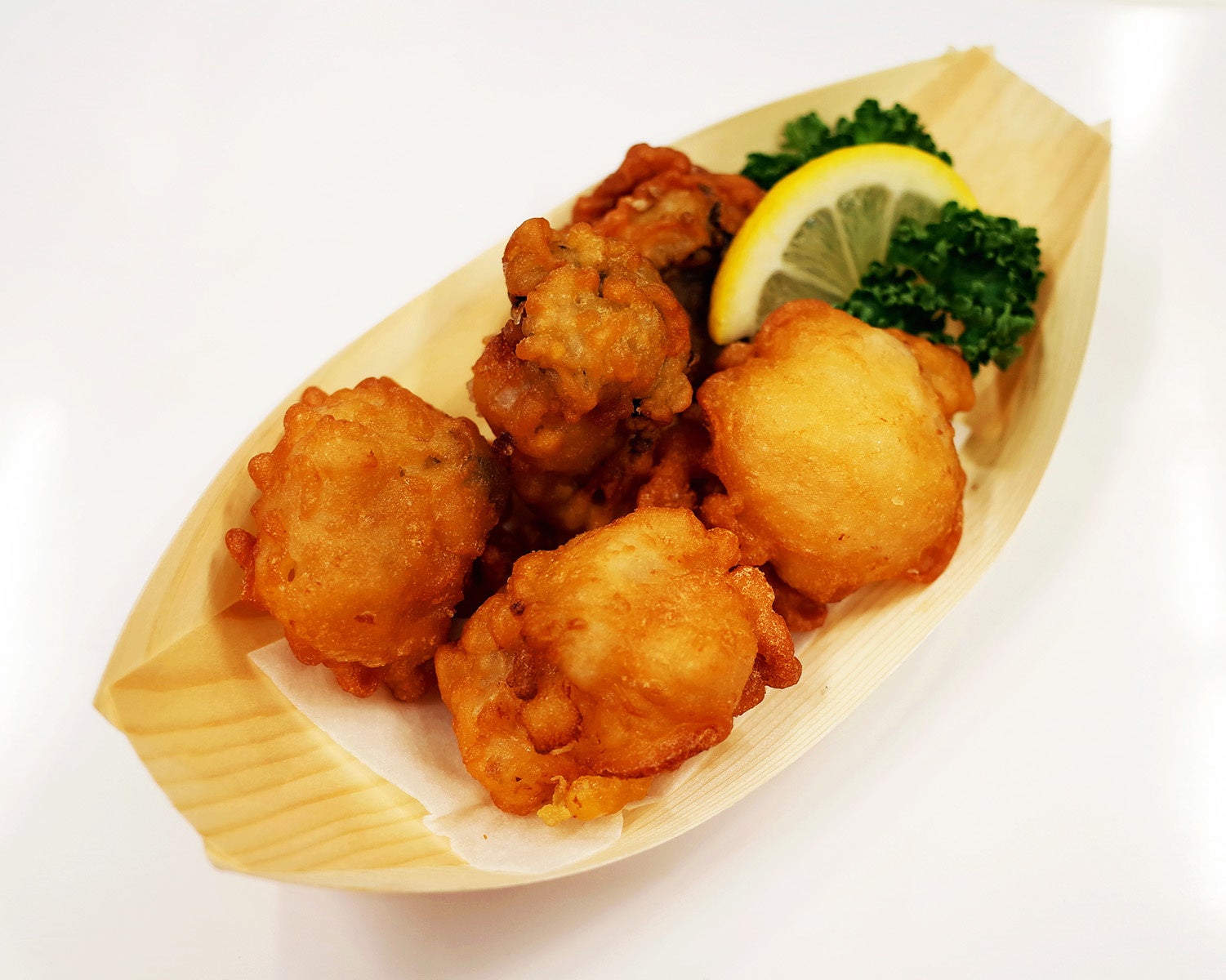 鶏肉などよりもやわらかく水分の多い身質ですので、しっかり下処理も行い、冷めてもサクサクにおいしい唐揚げに仕上げています。