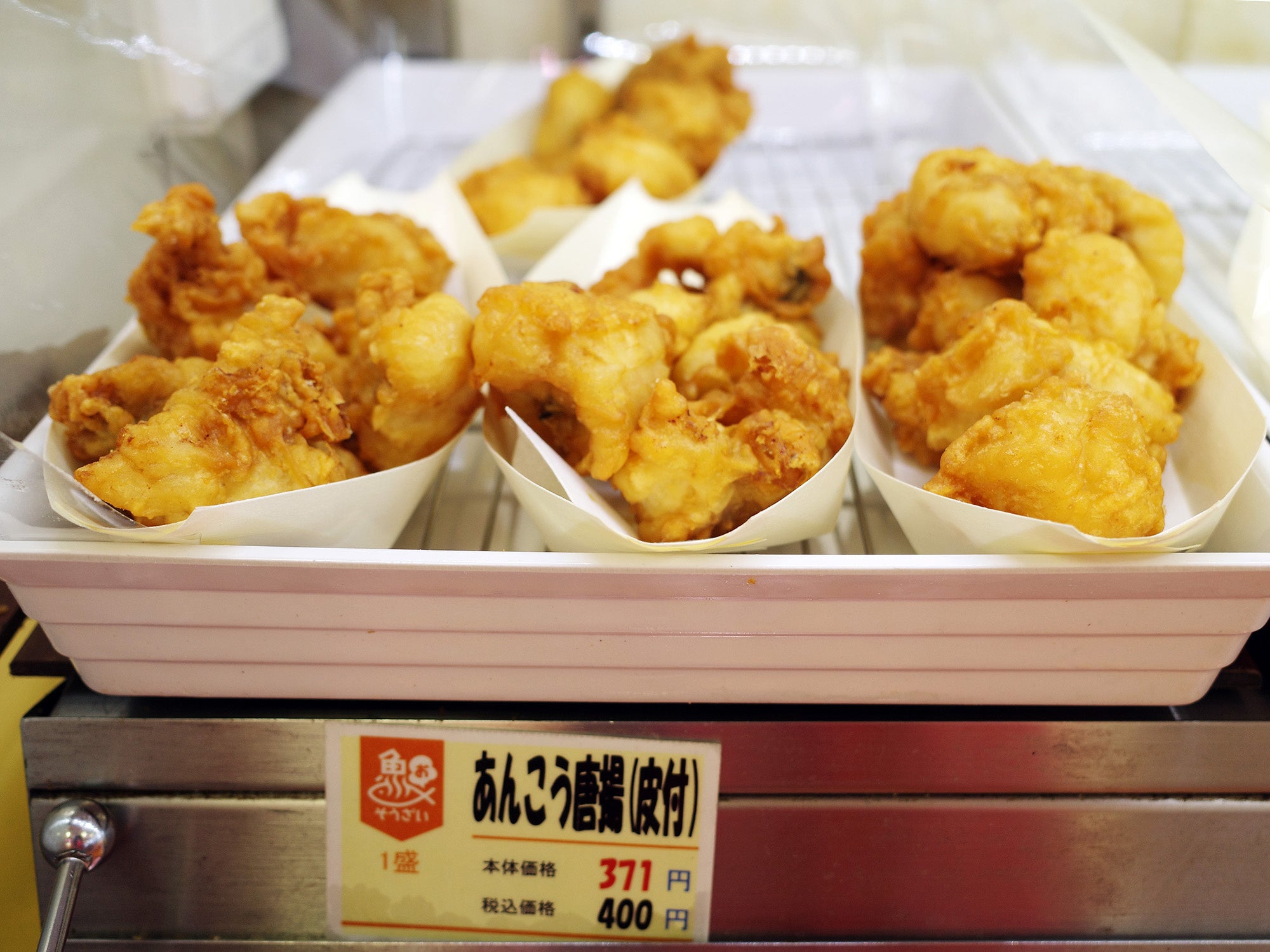 お惣菜の花形ともいえる唐揚を、あんこうで。カリカリ衣にジューシーな旨みが最高な一品。