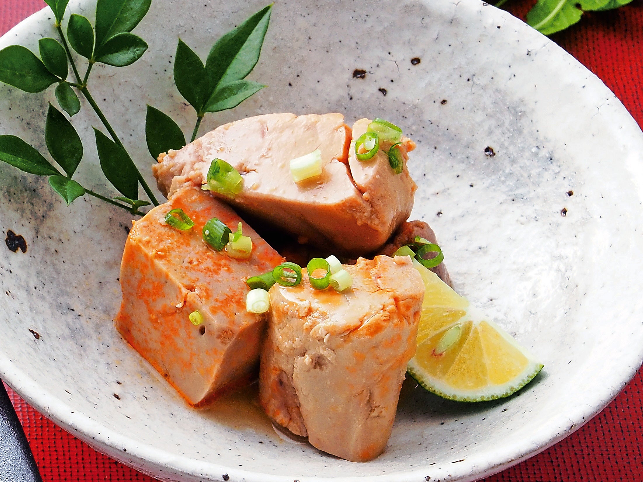 お店で大人気なのがこちら、蒸しあん肝刺身です。それぞれのお店で自家製です!