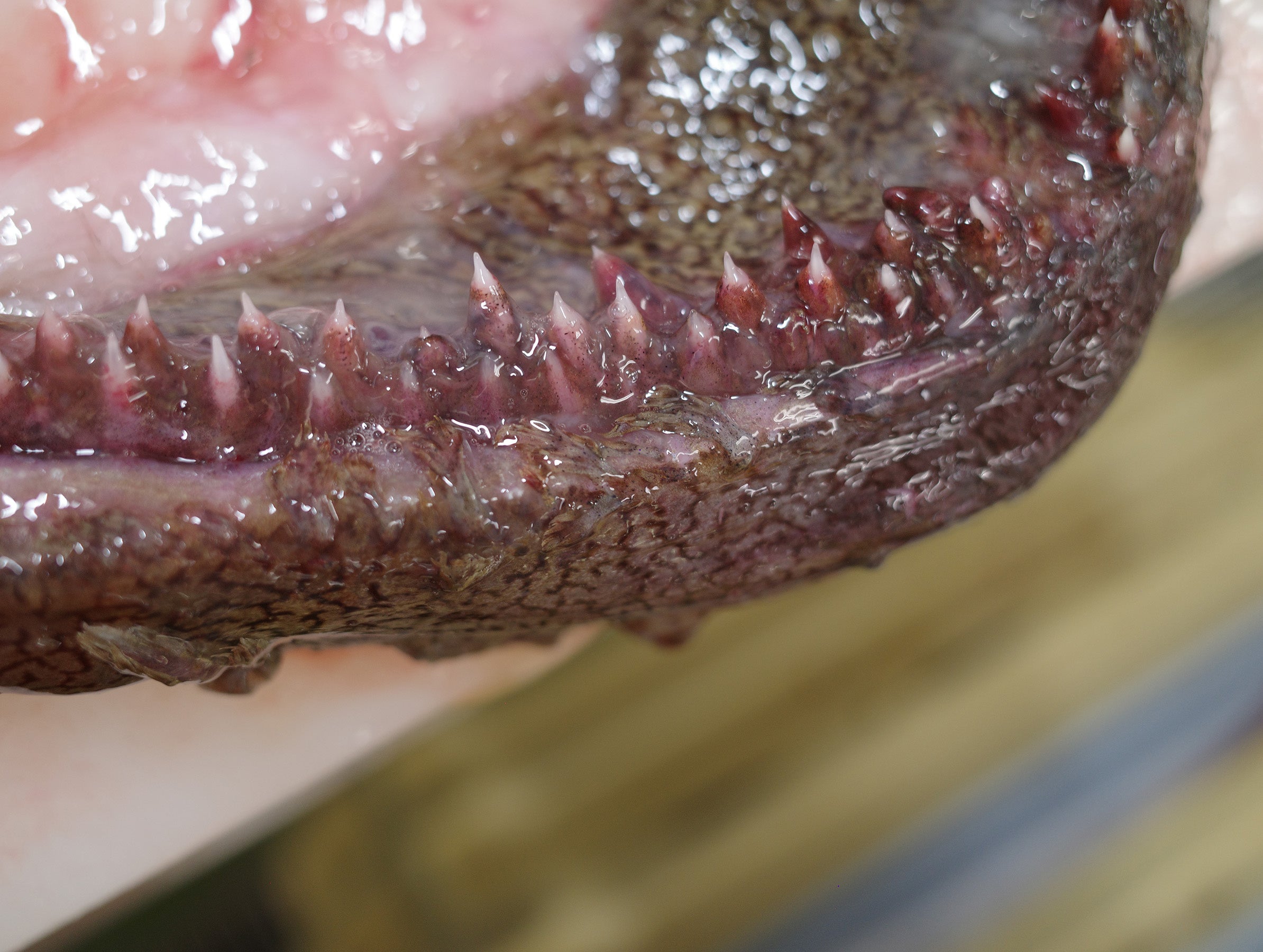 サメのようにギザギザの2枚歯 この口でなんでも食べます!