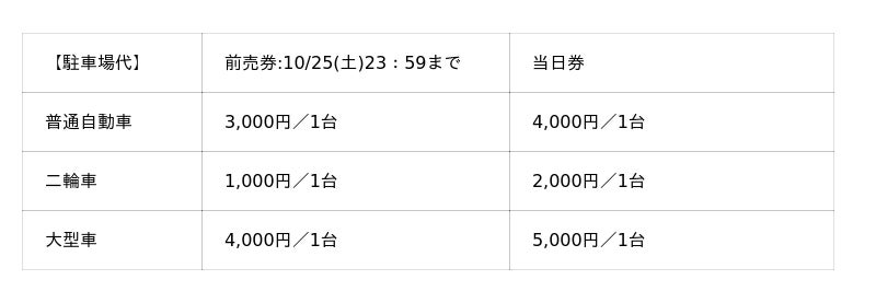 イベントは入場無料です。別途駐車場代を頂戴しております。