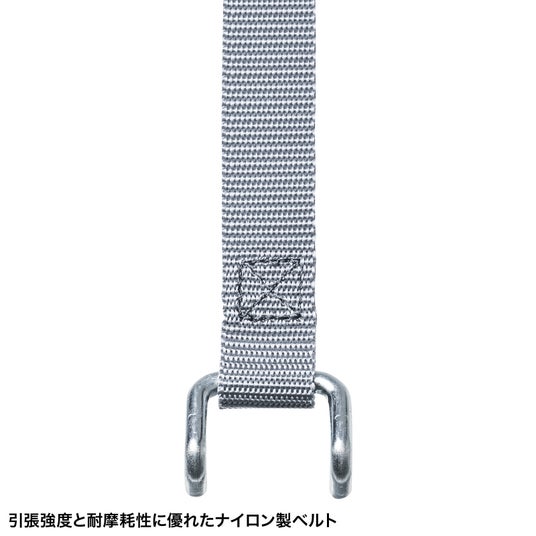 引っ張り強度と耐摩耗性に優れたナイロンウェビングを採用した、2セット入りの丈夫な機器固定ベルトです。