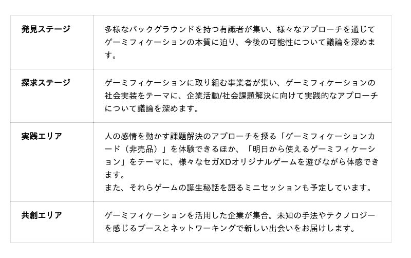 「発見ステージ」では、東京大学大学院情報学環の藤本徹教授や、前新潟県三条市副市長・一般社団法人新潟県eスポーツ連合顧問の上田泰成氏をはじめ、産官学民の各分野でゲーミフィケーションを活用するトップランナーが登壇。社会課題の解決やプロダクトの体験設計における可能性を多角的な視点から探ります。