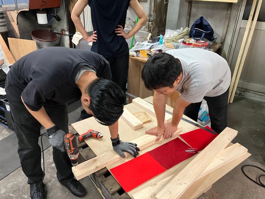 ストリートデザイン部会員によるファニチャー制作の様子