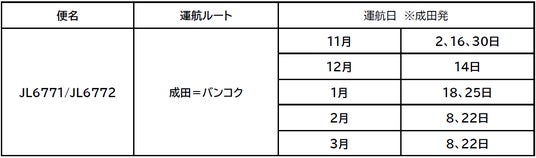 ・毎月の詳細スケジュールはJALCARGO Webサイトでお知らせします。