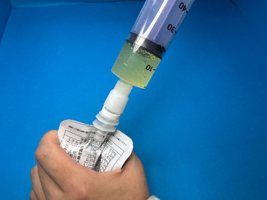 ・シリンジとパウチを直接接続できないため、内容物を別の容器に出す必要がある。