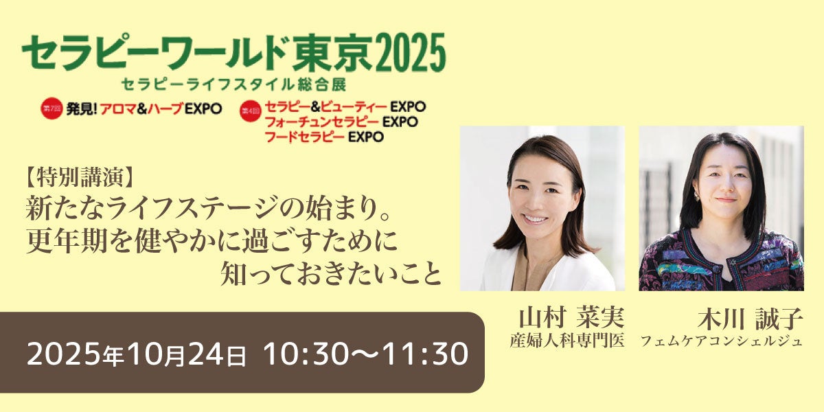医療従事者のマッチングや医療部材の卸、経営支援等の医療機関のトータルサポート事業を展開する株式会社セントラルメディエンス(本社:東京都港区、代表取締役:中川隆太郎、以下「当社」)の提携先医療機関である、医療法人財団小畑会 浜田病院・東京美容クリニック理事長の山村菜実が、「セラピーワールド東京2025」の特別セミナーに登壇します。昨年に続き2年連続の登壇となり、フェムケアコンシェルジュの木川誠子氏とトークをくりひろげます。