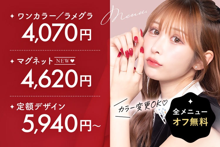 トレンドを押さえた豊富なデザインを、ワンカラー4,070円(税込)から提供し、いつでも付け替えオフ無料。全国61店舗を展開し、幅広い世代のお客様にご利用いただいています。