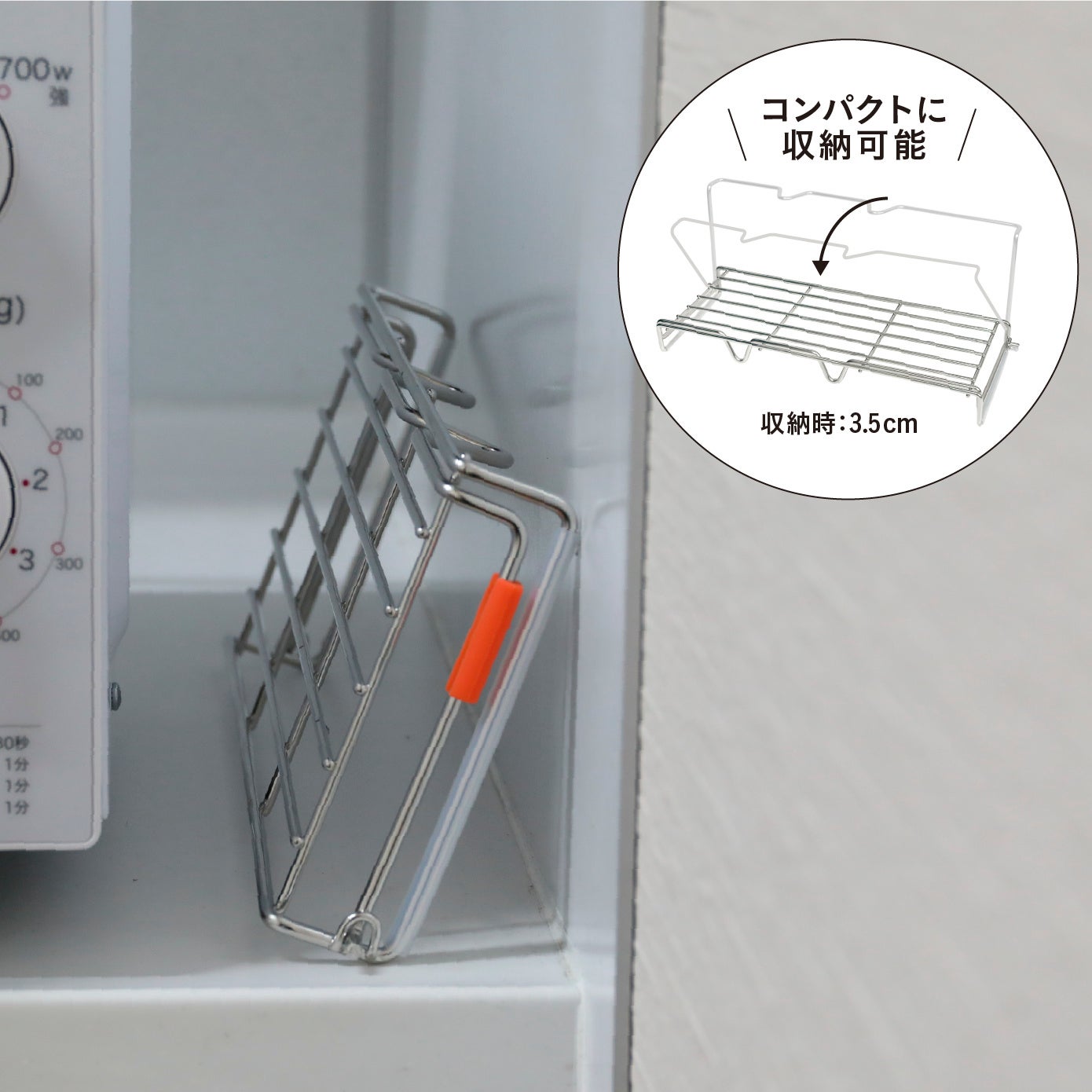 収納棚や引き出しのすき間に収まり、必要なときだけ広げて使えます。