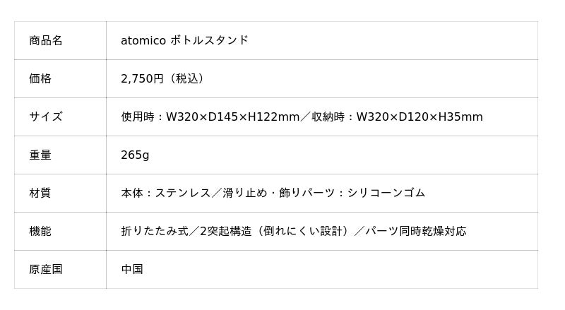 【新商品】倒れにくく、清潔に乾かす。考えられたかたちが生む、使いやすさ。「atomico ボトルスタンド」登場