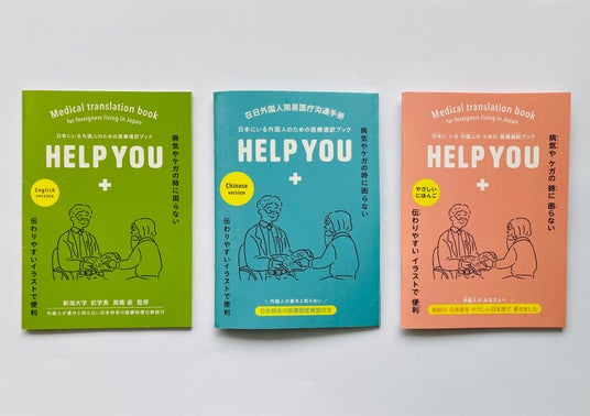 異なる言語でも意思疎通できる医療のコミュニケーションブックを開発しました。130以上のイラストやピクトグラムで図解しています。現在、全国の医療機関・大学800施設以上で導入されています。英語版、中国語版、 やさしい日本語版の三言語を展開中です。