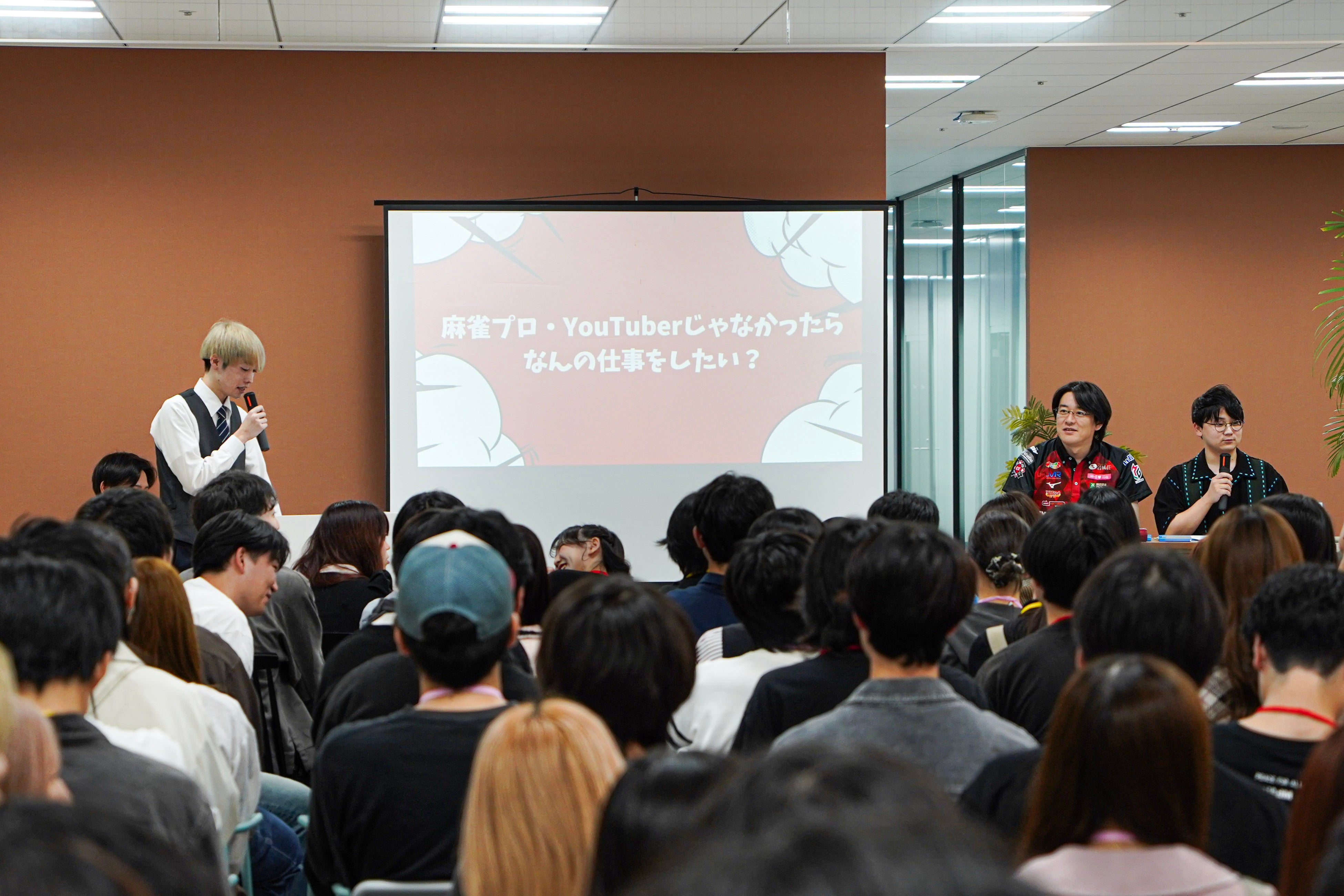 そして、両氏を交えた参加型のクイズ企画や、Mリーグ公式戦のパブリックビューイングも実施。エンターテインメントと学びを融合させた構成で、就職活動にも通じる考え方を学ぶ機会となりました。