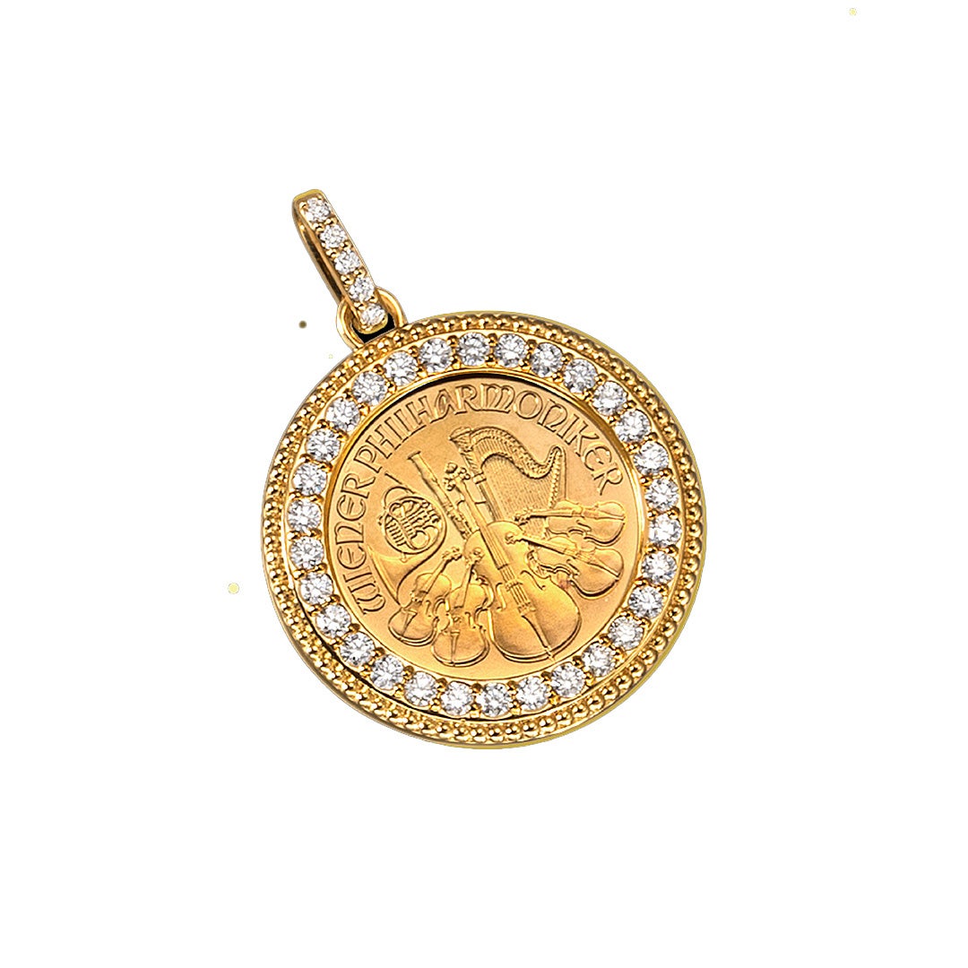 ウィーン金貨ハーモニー1/25オンス ペンダント K18チャーム付 税込価格:210,000円 ウィーン金貨ハーモニー1/25オンス ダイヤモンド ペンダント 税込価格:350,000円