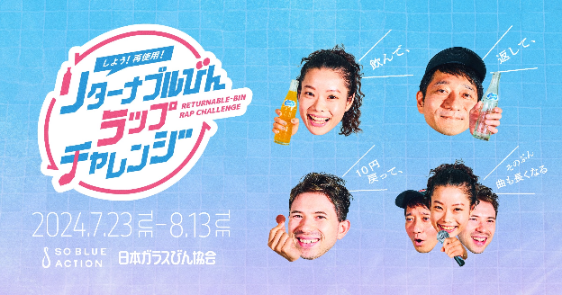 日本ガラスびん協会ではリターナブルびん、びんリユースの価値再発見・再定義を行う活動「SO BLUE ACTION」を2022年より、具体的なアクション・情報発信を行っています。<しよう!再使用!リターナブルびんラップチャレンジ>