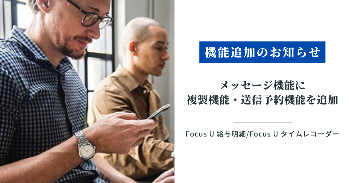 【「Focus U 給与明細」「Focus U タイムレコーダー」新機能追加のお知らせ】メッセージ機能に複製機能・送信予約機能を追加