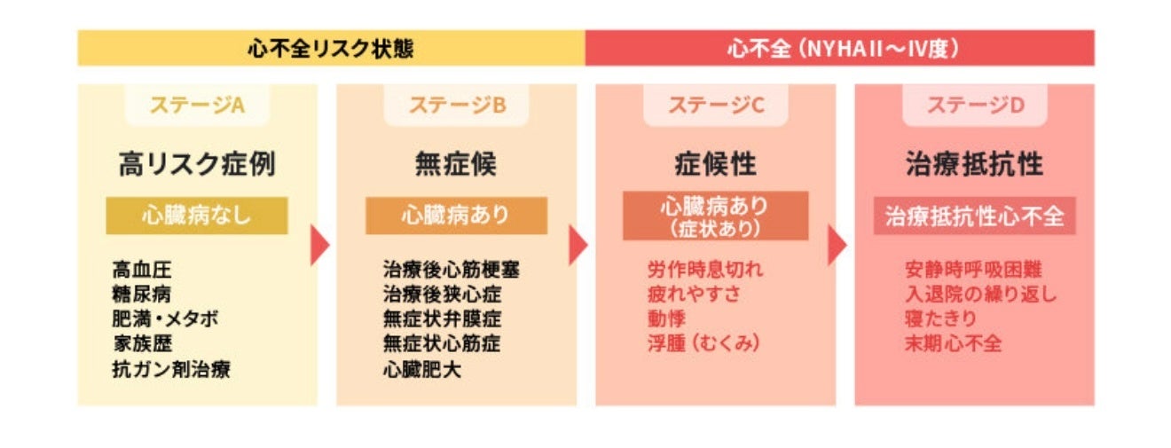 日本循環器学会は「急性・慢性心不全診療ガイドライン」を発表し、新たに下記のステージを示しています。
