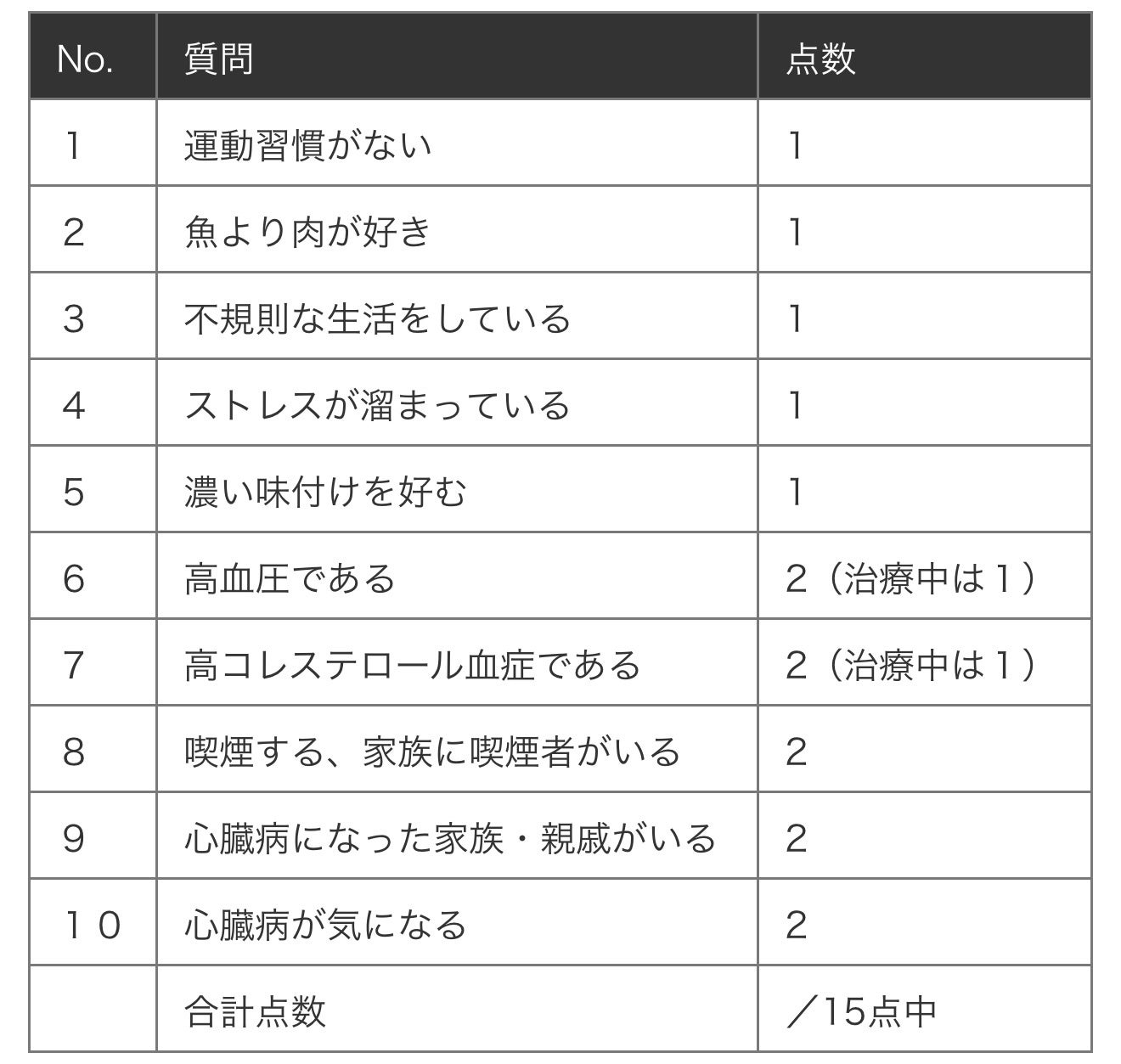 現在の心臓病の発症リスクがどれくらいあるのか、まずはセルフチェックしてみてください。