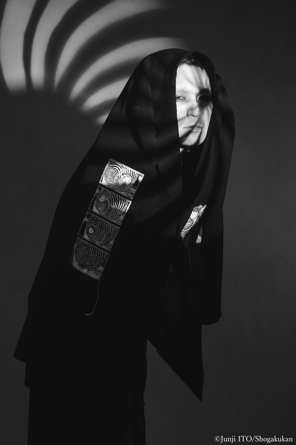 本コレクションを纏うのは、the dresscodesの志磨遼平。伊藤潤二、そして『うずまき』が描く“静かに狂気が広がる世界観”を体現する。