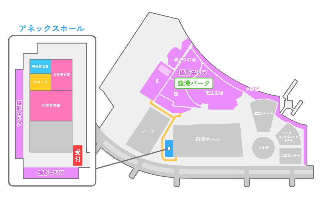 本イベントの運営事務局は「ANIMEK運営事務局」として活動しています。会場はパシフィコ横浜アネックスホール(F203-F206、F1、F2、フォワイエ)と臨海パークを使用します。