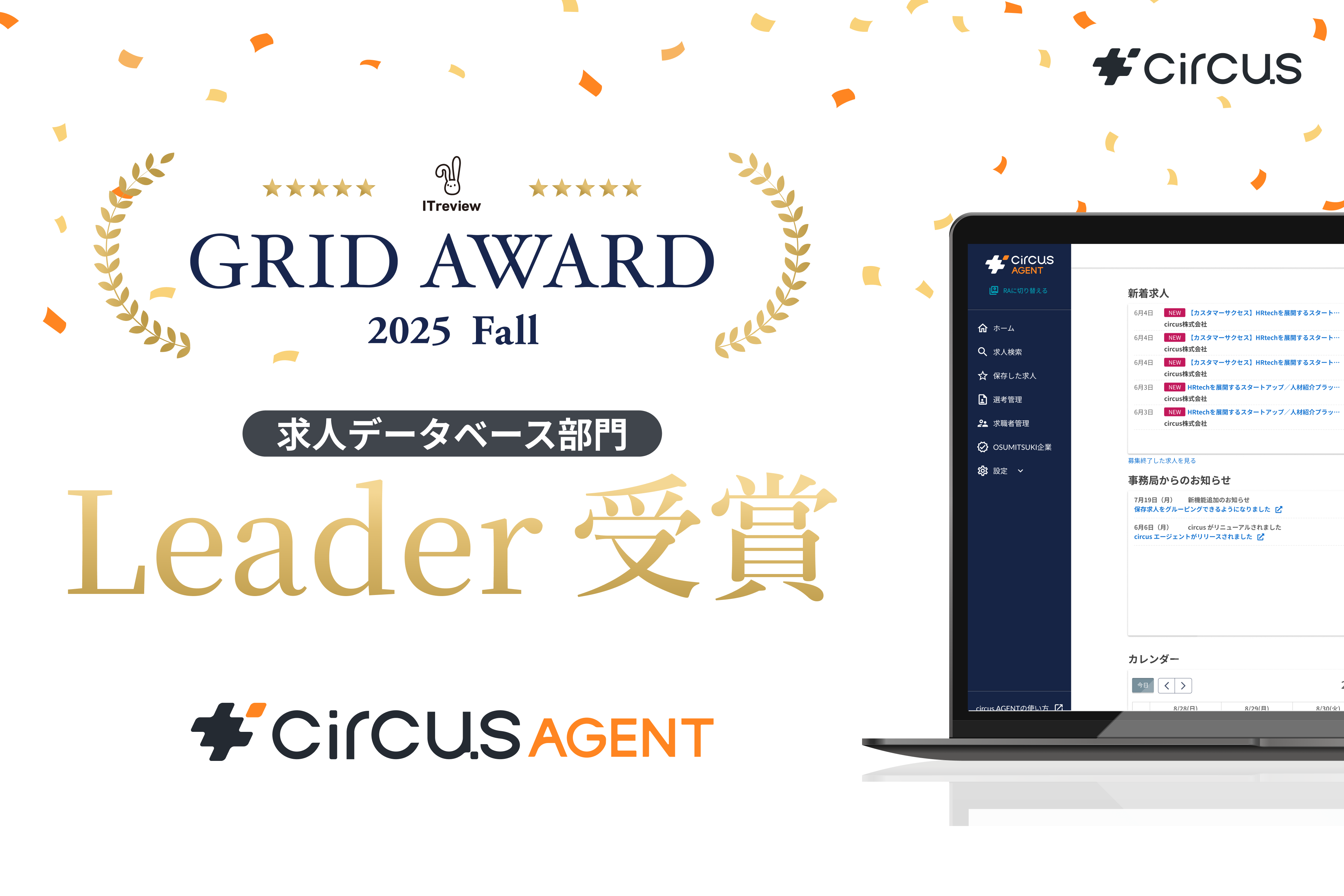 【circusAGENT】「ITreview Grid Award 2025 Fall」求人データベース部門でLeaderを受賞