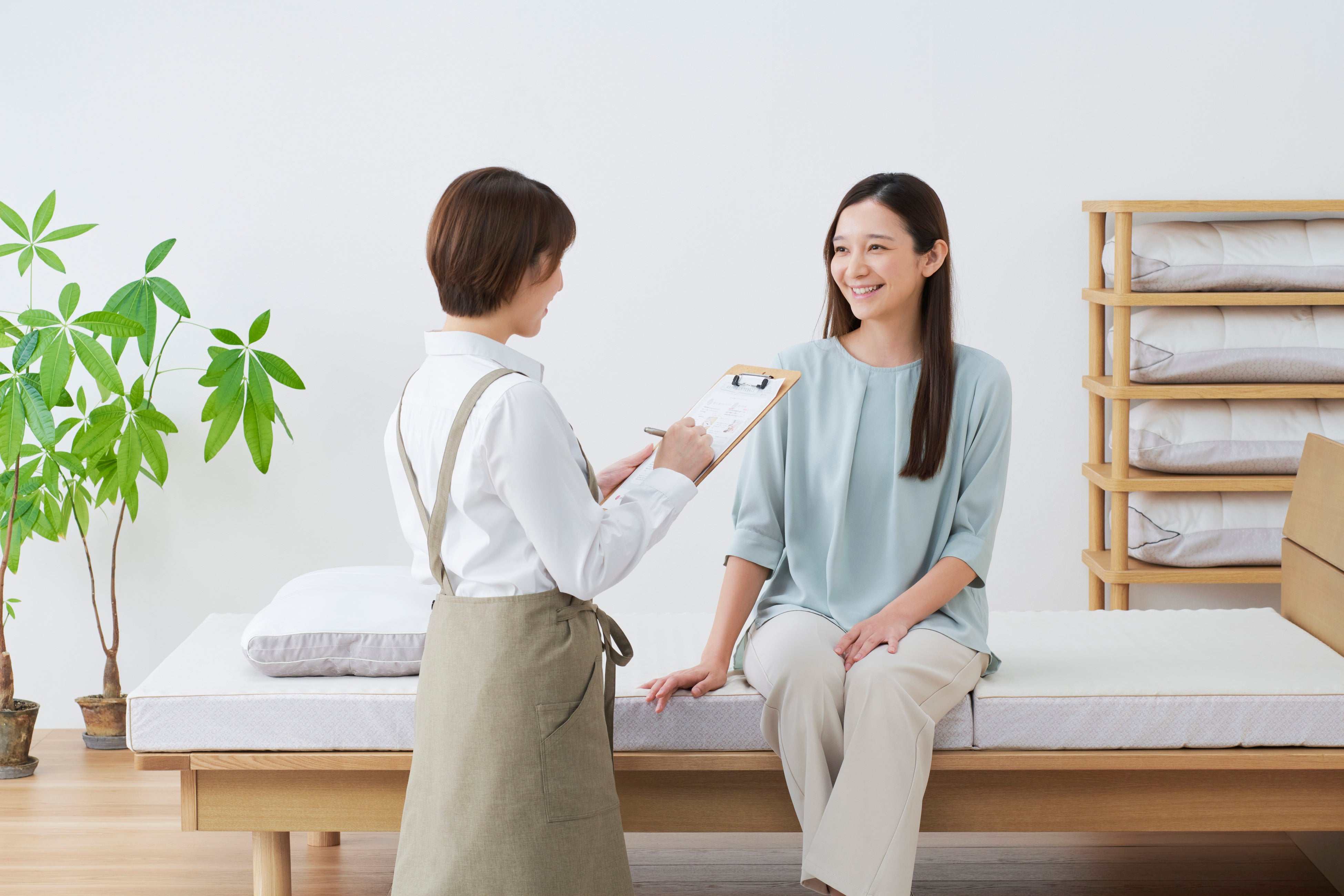 ・コンサルティングカウンセリングを行います。睡眠や、いまお使いのまくらや寝具の悩みのほか、睡眠環境などお聞かせください。