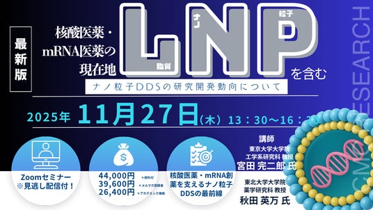 【ライブ配信/Zoom】「核酸医薬・mRNA医薬の現在地―LNPを含むナノ粒子DDSの研究開発動向について―」セミナー開催!11月27日(木)主催:(株)シーエムシー・リサーチ