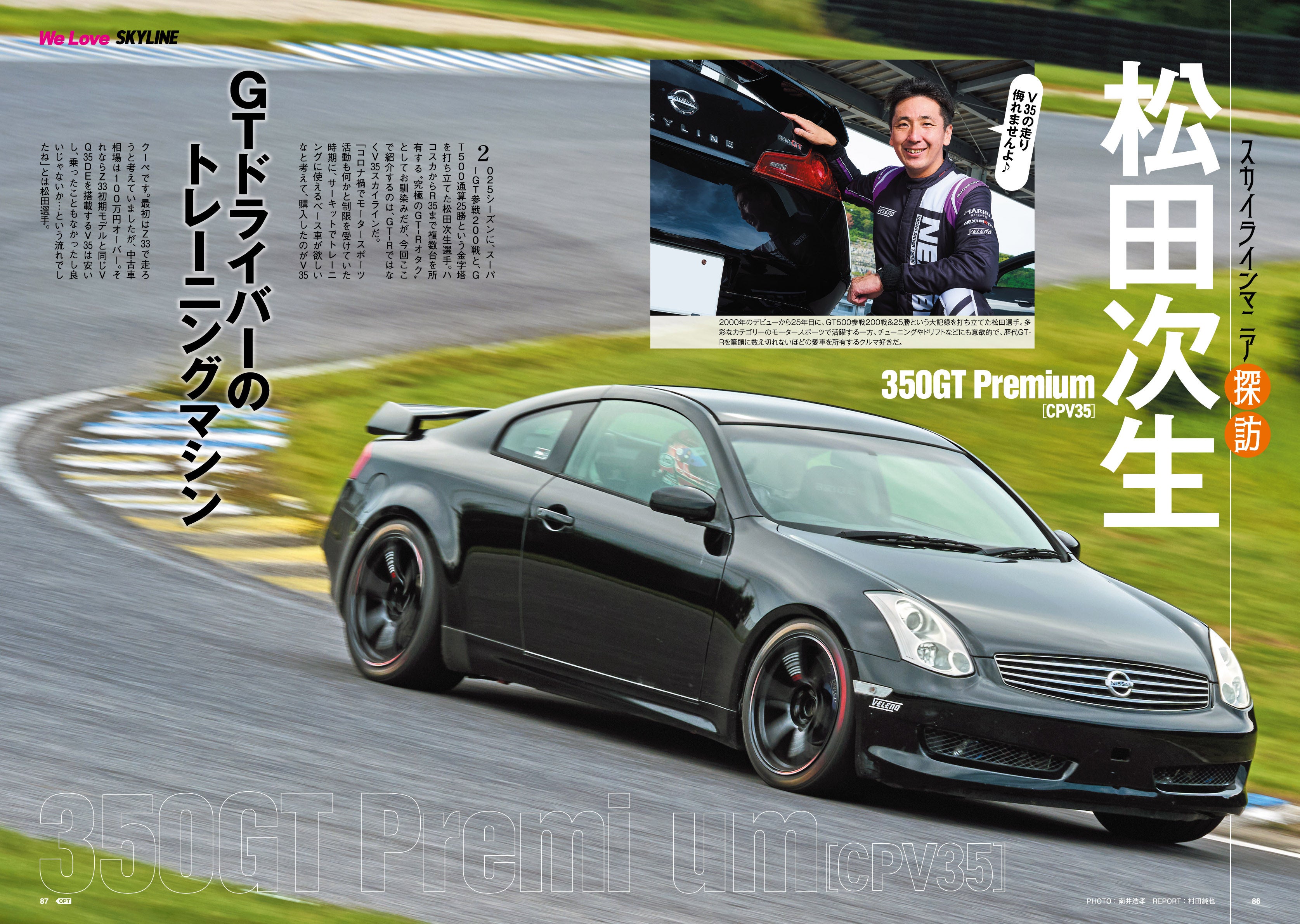 まさにマニアと呼ぶに相応しい2人のスカイライン好きに密着。ワークスマシン仕立てのKPGC10/DR30/BNR32を所有する高濱健児さんのガレージを訪問。そして、GT-Rマニアとして知られるレーシングドライバー松田次生選手の愛車から、今回はCPV35を紹介してもらった。