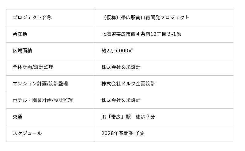 (仮称)帯広駅南口再開発プロジェクト、2028年春に開業予定。マンション、ホテル、商業施設を含めた2万5,000平方メートル の街区へ
