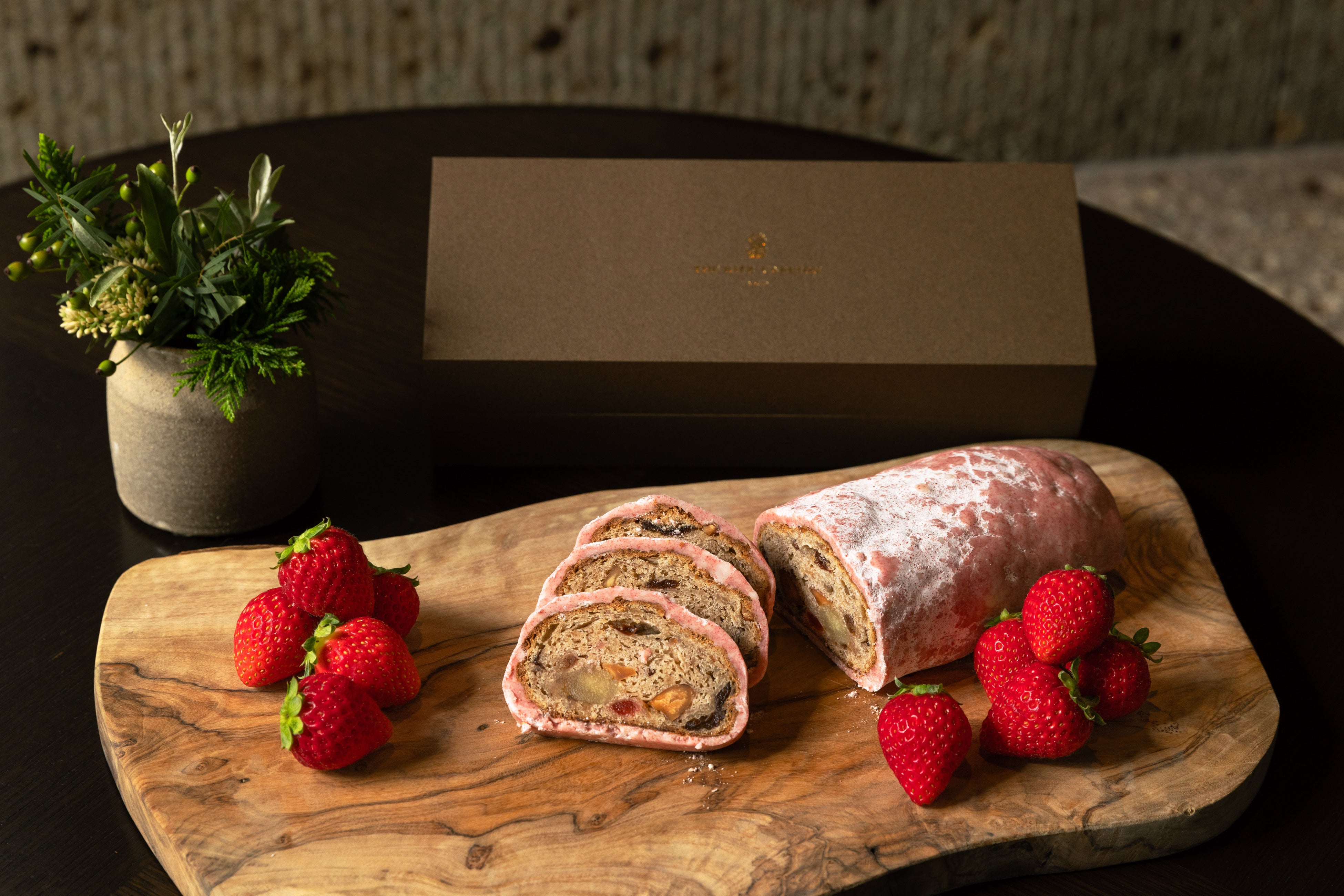 生産量58年連続で全国一位を誇る栃木県の特産物「苺」を主役に、ピンク色のシュガーパウダーを纏ったシュトーレンを、200個限定で販売いたします。日光市産バターと苺の甘酸っぱさが調和した贅沢な味わいに、シナモンやナツメグなどを効かせることで、お酒のお供としても最適なスイーツに仕上げました。