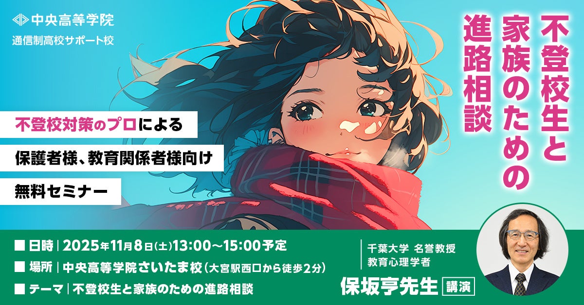 中央高等学院 さいたま校で不登校生と家族のための進路相談セミナーを11月8日(土)に開催