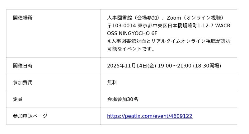 【人事図書館 主催】「トップダウン以外に、うまくいく組織はあるのか?」世界の先端組織の事例から探る、次世代の組織論セミナー(2025/11/14開催)