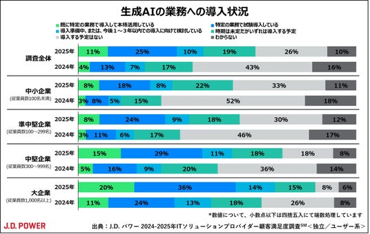 前年の2倍となる36%の企業が生成AIを既に導入【J.D. パワー 2025年ITソリューションプロバイダー顧客満足度調査(SM)<独立/ユーザー系>】