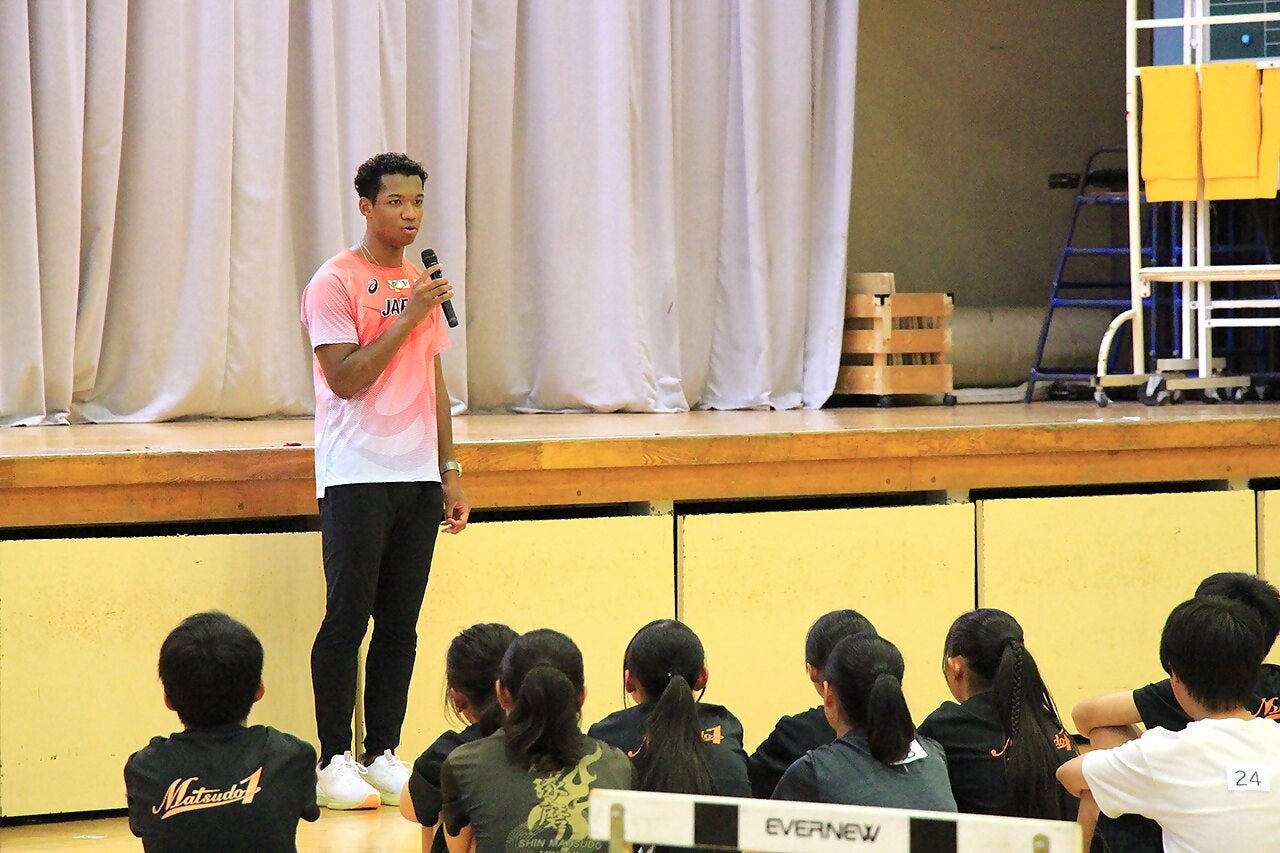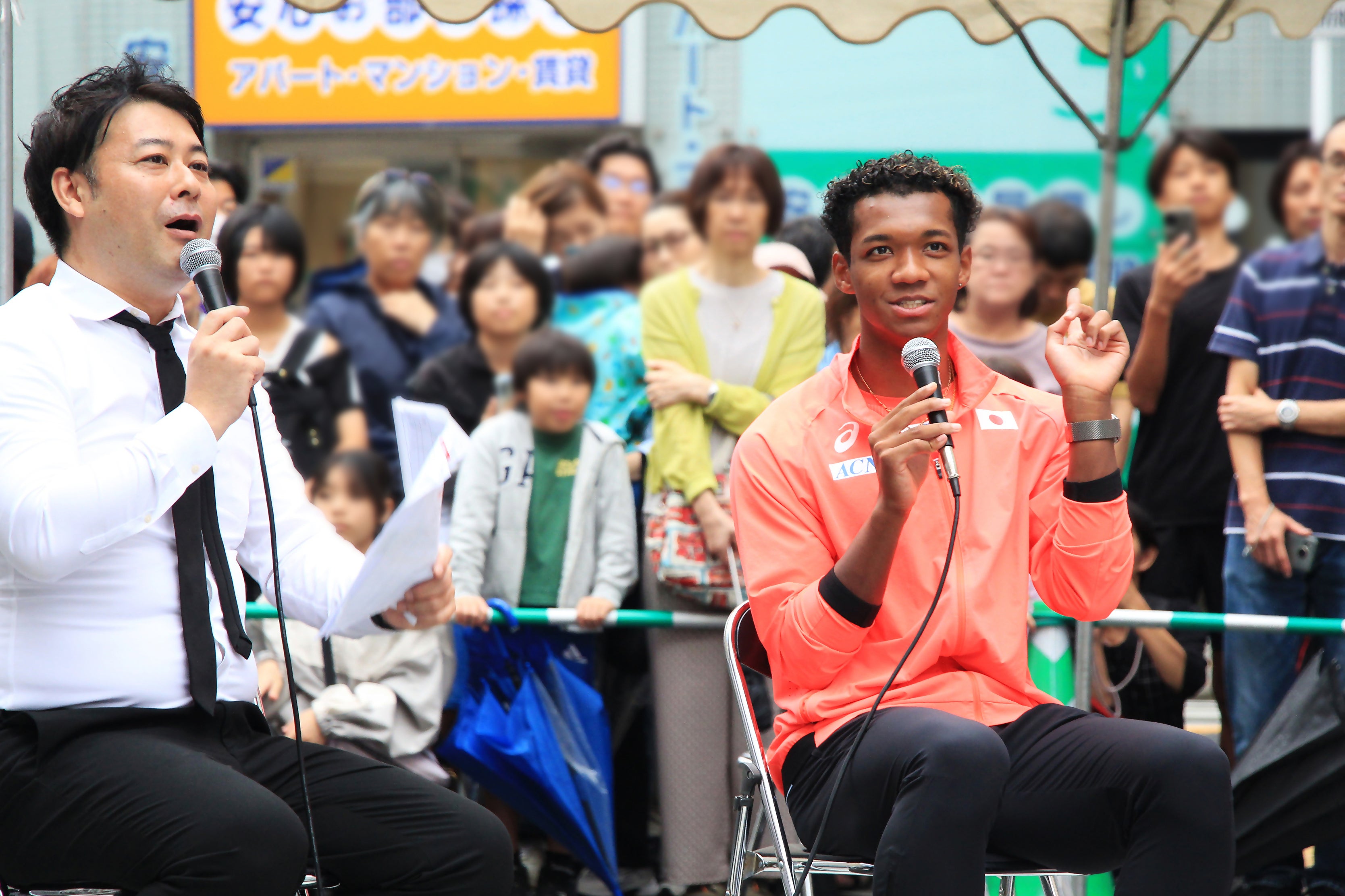 「松戸ファンフェスタ in 松戸まつり」松戸市出身で世界陸上男子110mハードル5位の村竹ラシッド選手が凱旋 トークショーと子どもたちへの指導で市民と交流