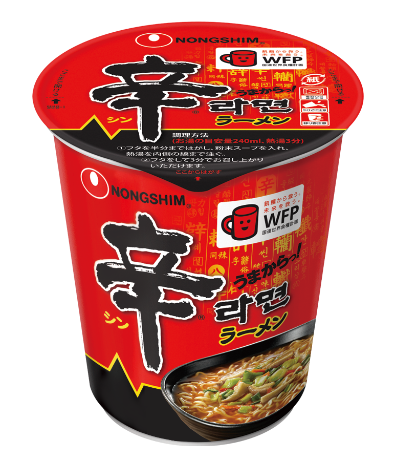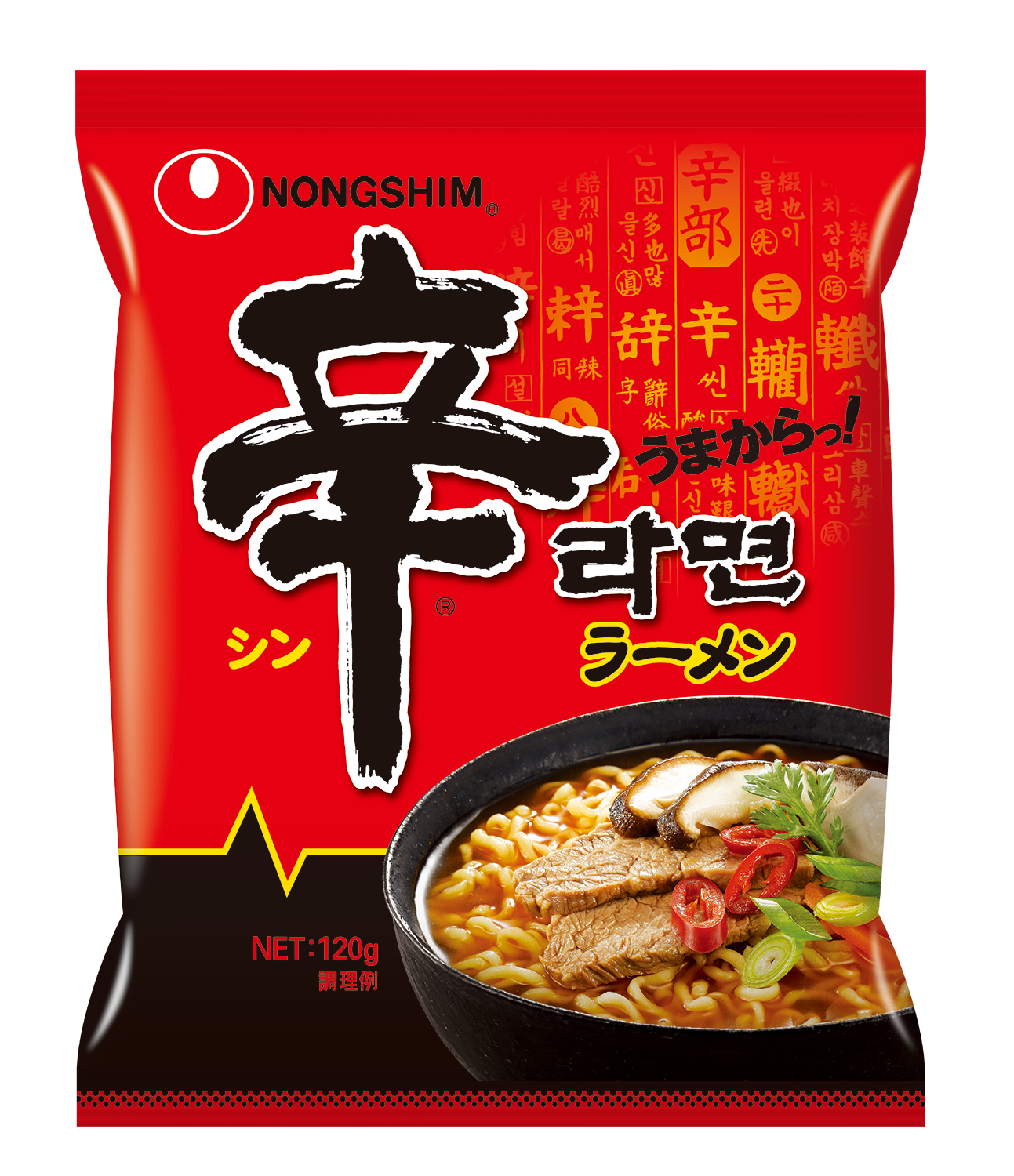 韓国に本社を構える農心が製造・販売しているインスタントラーメン。1986年に韓国で発売。韓国で初めて辛さを売りにした製品として大ヒットし、現在では韓国だけでなく日本やアメリカ、ヨーロッパと世界各地で販売されています。農心は現在、辛ラーメンを含めた韓国インスタント麺市場でのシェア率が56%に達し、30年以上にわたり1位(※)の座を維持し続けています。「Spicy Hapiness In Noodles」はもっと沢山の国で楽しまれるように「辛ラーメン」に込めたブランドグローバルキャッチコピーです。