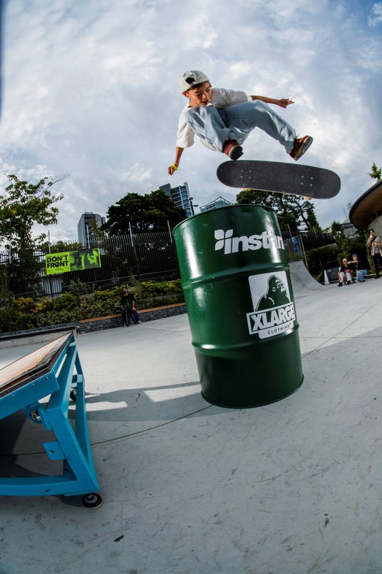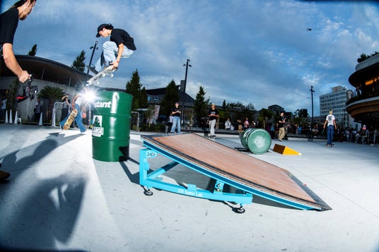 「アンダー13」、「アッパー14」にクラス分けされ行われたドラム缶パンクセッションでは、次々とスケーターたちがドラム缶越えにチャレンジし、会場全体がひとつになったような歓声が上がりました。