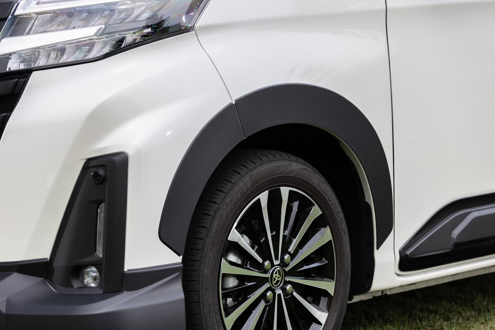 デザインコンセプトは「オーバーランドカスタム」、30代~50代男性をメインターゲットとしております。ブラックパーツとボディとのコントラストにより、ノーマルのルーミーの外観を一変!