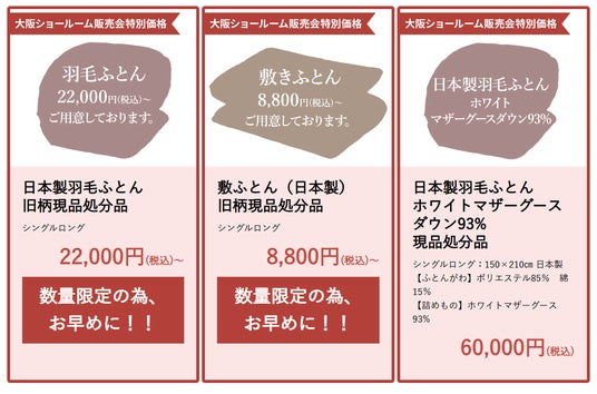 【昭和西川大阪ショールームあったか寝具フェア概要】 <3日間限定>