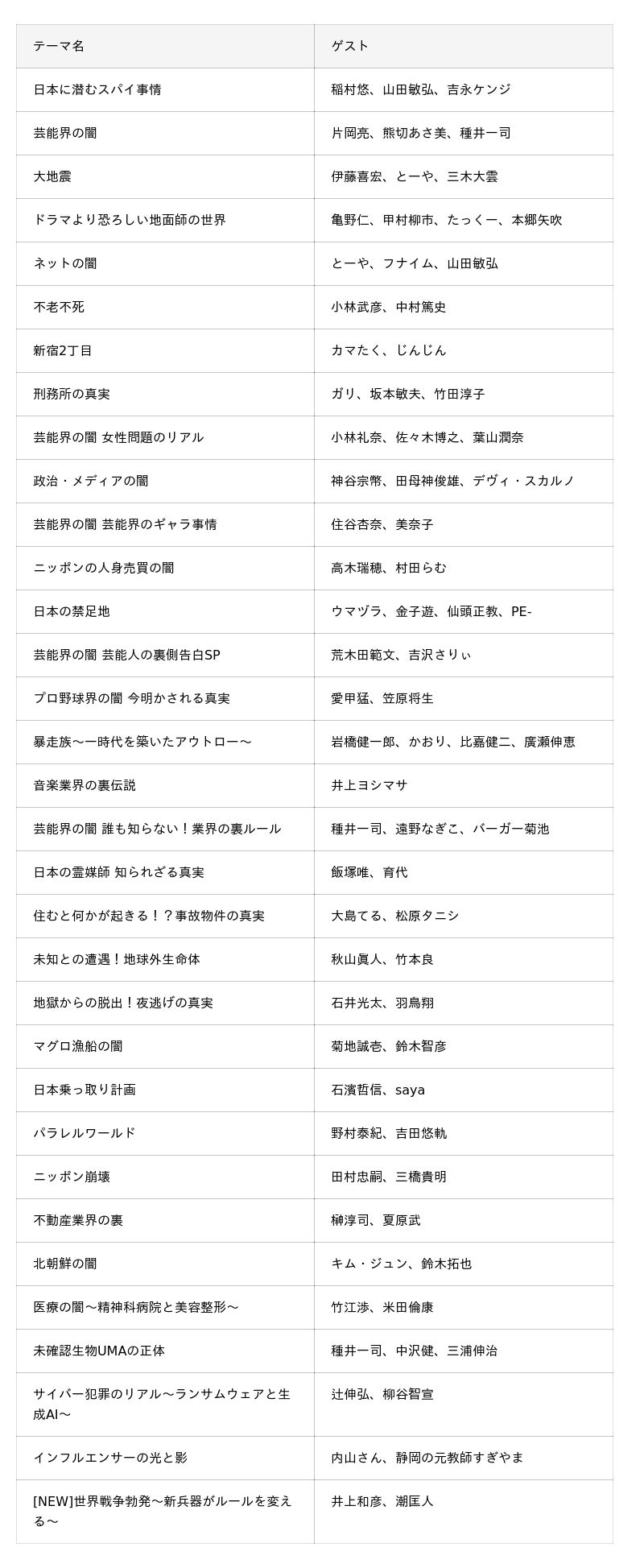 都市伝説――それはもう、誰もが知る「表の話」。でも、まだ表に出ていない“裏話”があるんです。そこには、真実に近づくためのヒントが隠されているかもしれません。Mr.都市伝説・関暁夫がこれまで伝えてきたこと、「そんなの信じられない」と思った人も多いでしょう。でも振り返ってみてください。その言葉、意外と“嘘じゃない”と思いませんか?