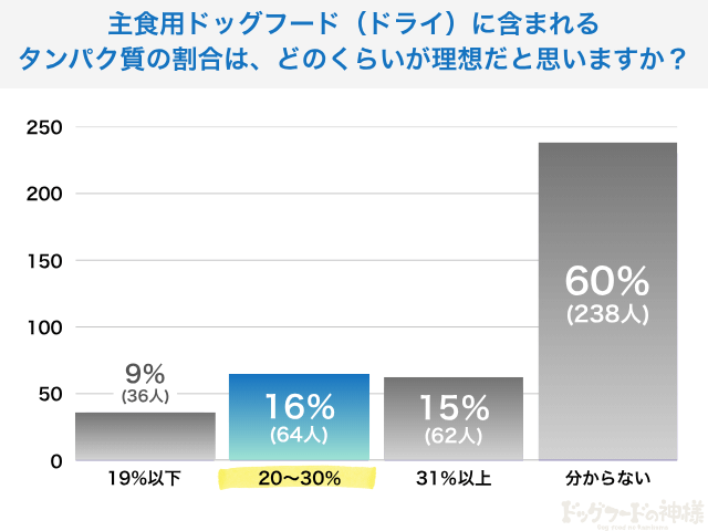 ■ 愛犬の主食用ドッグフード(ドライ)に含まれるタンパク質の割合は、どのくらいが理想だと思いますか?