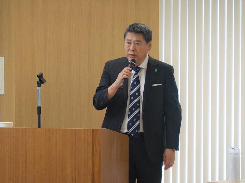 あいさつする信州大学の中村学長