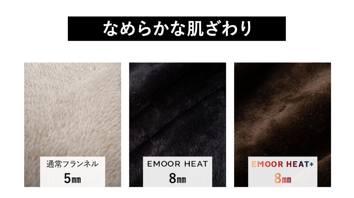 “寝る・座る・たたむ”に高い専門性を持つ健康家具ブランドEMOOR(エムール)から、「EMOOR HEAT+(エムールヒートプラス)」2枚合わせ毛布のふわふわタイプが新登場しました。