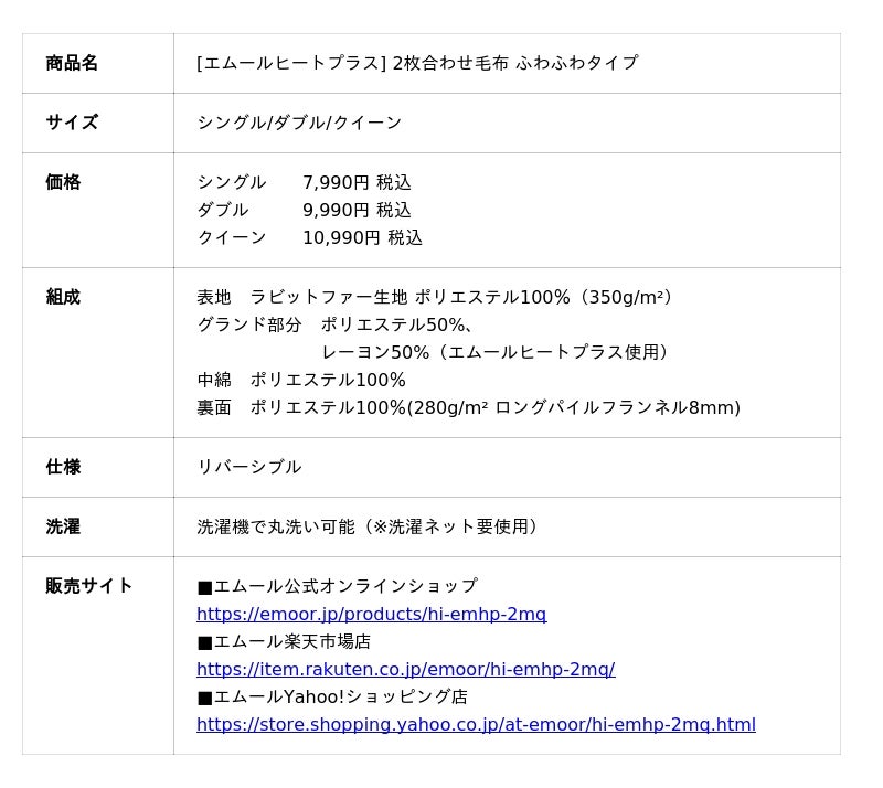 「身体に合った寝る・座る・たたむ」を提供する健康家具ブランドEMOORを展開する株式会社エムール(東京都立川市:代表取締役 高橋 幸司/以下エムール)は、2025年10月25日より『エムールヒート プラス 2枚合わせ毛布<ふわふわタイプ>』の販売を開始しました。