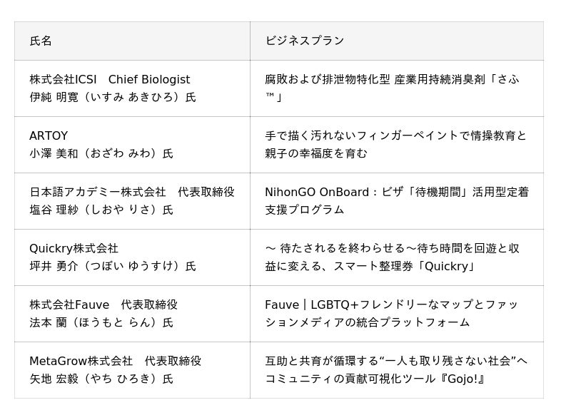 この度一次選考を通過した29名のセミファイナリストから最終選考会へ進むファイナリスト6名が決定。本コンテストの集大成となるグランプリが決まる最終選考会を2025年11月11日(火)に開催いたします。